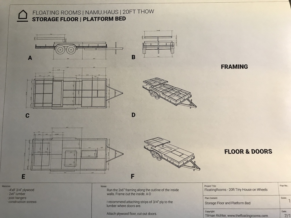 The package contains detailed plans and documentation of the 20 ft. tiny house on wheels, our prototype. Plans included: